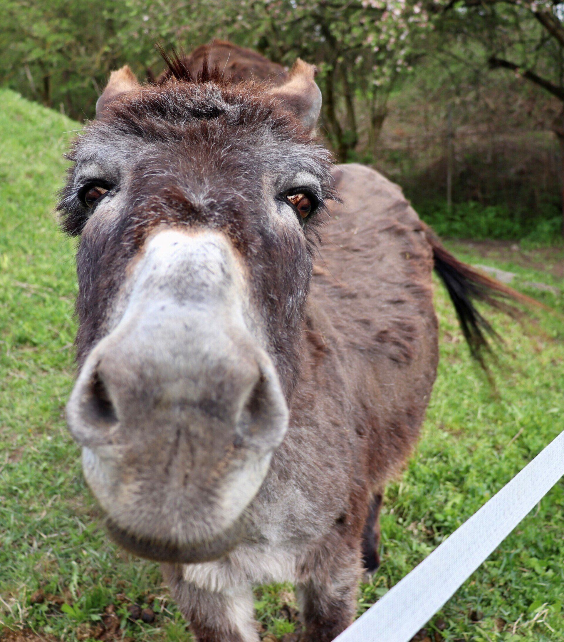 Bitte zieht festes, geschlossenes Schuhwerk an, damit eure Füße geschützt sind, falls der Esel doch mal daneben tritt.
